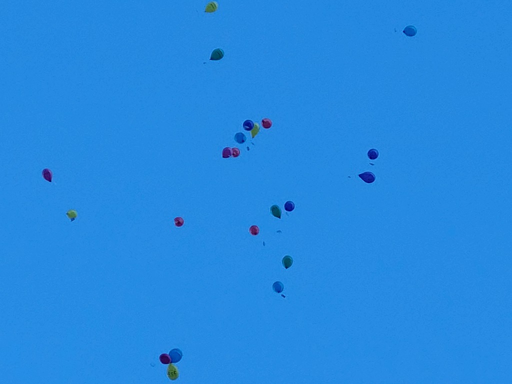 En classe pour le téléthon on écrit des messages de solidarité pour les personnes qui ont une maladie. Puis on les accroche à des ballons biodégradables, qu’on envoie dans le ciel.
